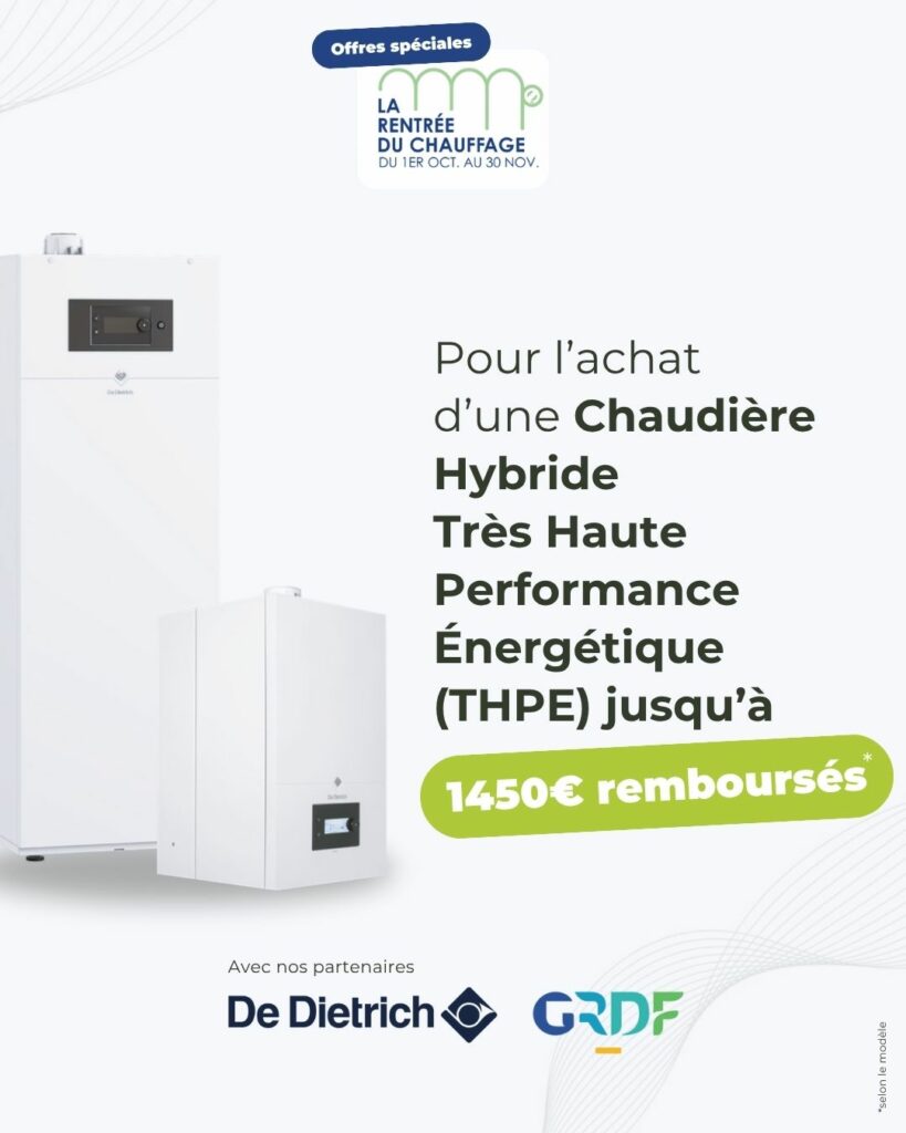 👉🏼Jusqu’à 1450€ remboursés pour une chaudière Hybride THPE